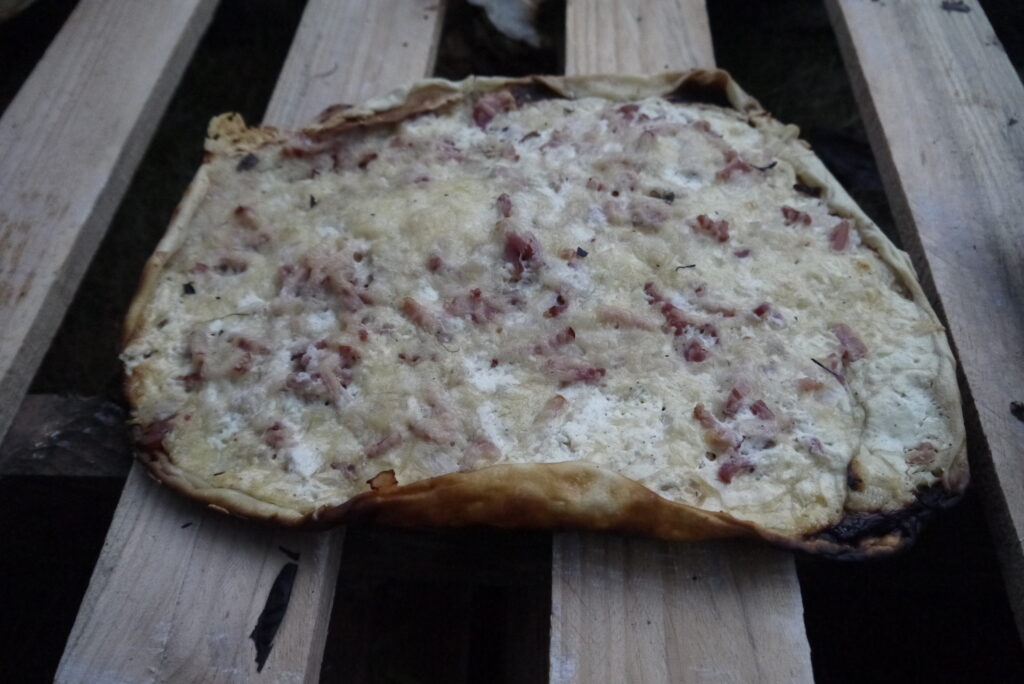 Incorporer la farce à la pâte et rouler dans la forme voulue (en pain, c’est pratique pour les scouts).
