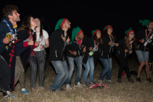 Tout le monde chante la petite chanson et au moment de « chargez », les cavaliers montent sur le dos de leurs montures.
