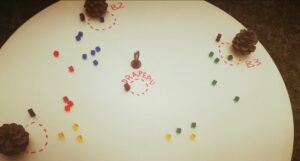 – Des jeunes : A l’aide d’un pistolet à peinture, rentrer dans les camps adverses, sans se faire prendre sa vie, afin de peindre le légume correspondant à son équipe pour le gagner et le rapporter dans son propre potager. Les légumes rapportés permettront de constituer des recettes.
