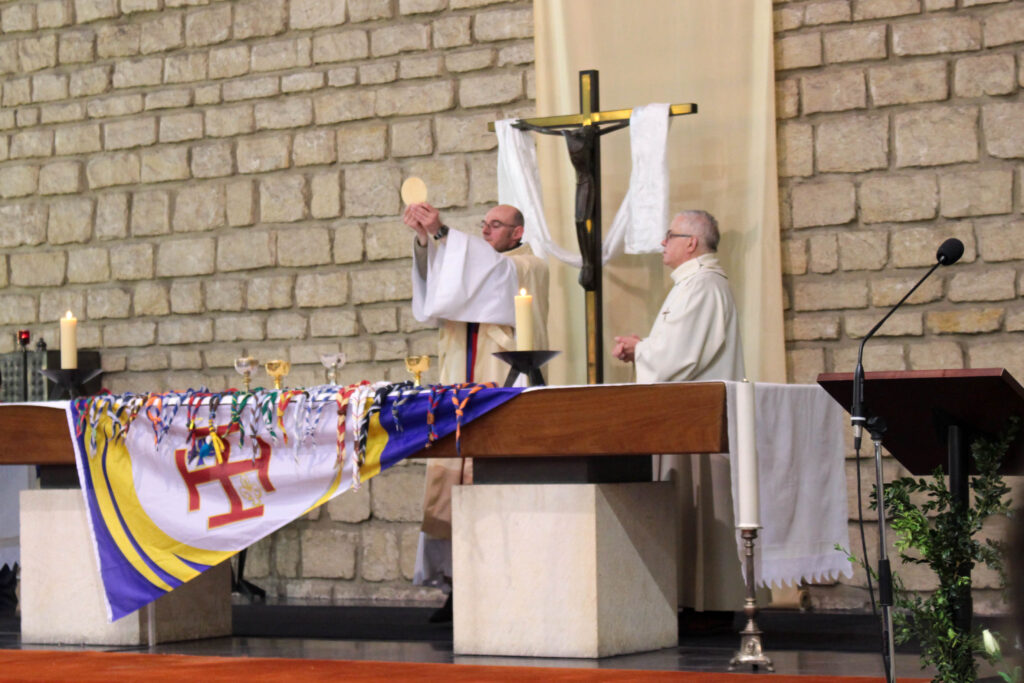 Les fidèles vont assister à la transformation du pain de l’hostie en corps de Jésus et le partager. Il y a tout un temps de rites, de prières et de dialogue avec l’assemblée qu’on appelle la prière Eucharistique. L’assemblée dit aussi le Notre Père pour se rappeler qu’ils sont tous unis autour du même Dieu. Ceux qui ont déjà communié dans leur vie s’avancent alors pour recevoir l’hostie. Pour ceux qui ne l’ont pas déjà fait, ils peuvent recevoir une bénédiction en s’avançant les mains croisées.