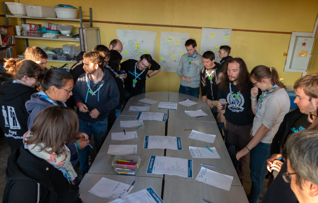 Avant que tout le monde n’arrive, nous profitons d’un point avec l’équipe comm SGDF sur notre organisation mutuelle. Nous allons préparer quelques vidéos d’interview de responsables de groupes, une vidéo pour la pleinière aussi.