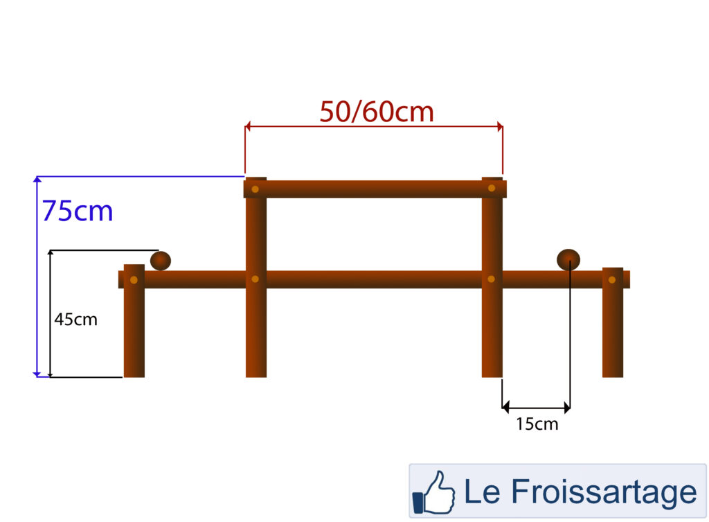 Pour faire un méplat, il suffit d’aplanir une extrémité ou le milieu des deux rondins à l’aide d’une plane, d’un ciseau à bois ou d’une hachette.