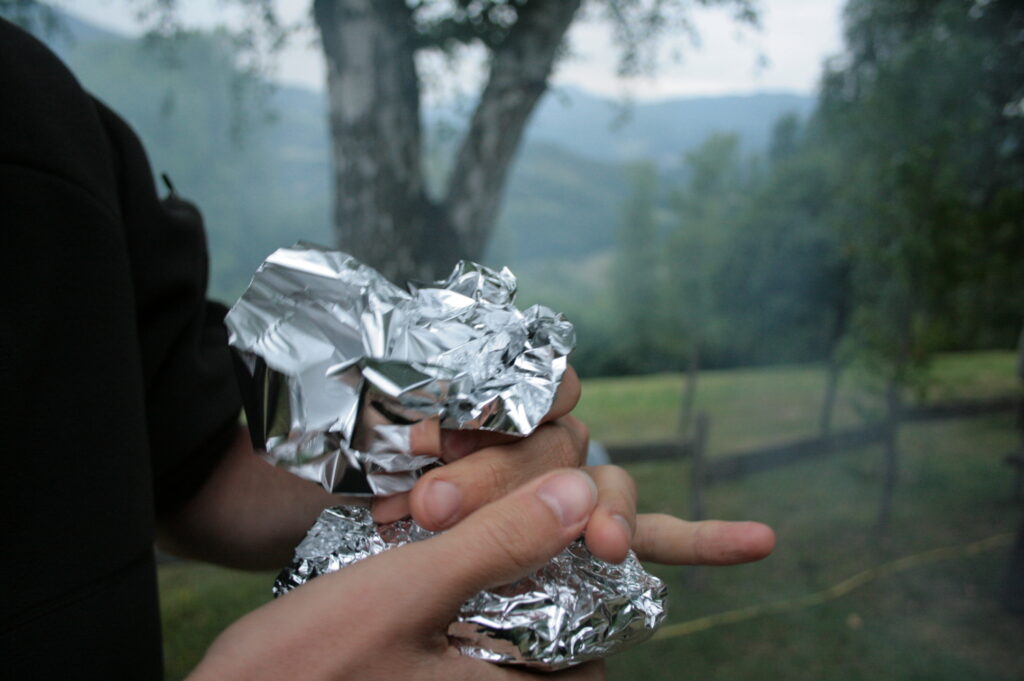 - 1 baguette de noisetier de 1 m de long bien droite, grosse comme le pouce à un bout (à faire sur place)