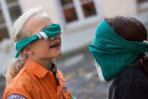 Le jeu oblige à une certaine confiance dans le groupe et permet ainsi de découvrir l’autre.