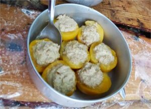 – Découpe tes tomates en diagonale en suivant bien l’exemple des photos ci-dessous :