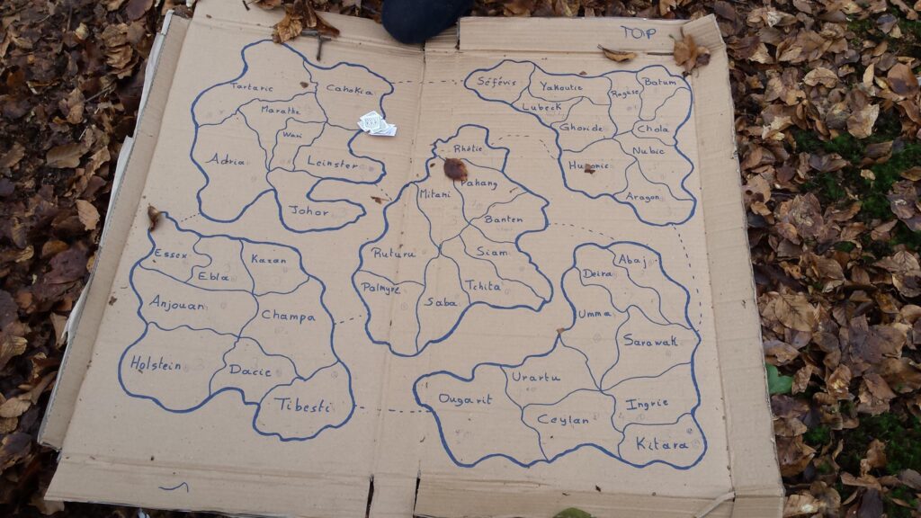 Ce grand jeu long est un peu compliqué à expliquer au démarrage, mais permet de vivre un grand jeu de plateau passionnant, avec des stratégies et des alliances entre équipes !