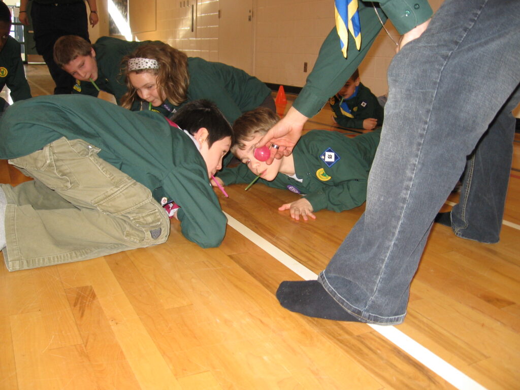 Les autres doivent tenir en équilibre dans cette position le plus longtemps possible. Si au bout d’une minute tout le monde est toujours en équilibre, le meneur a perdu.